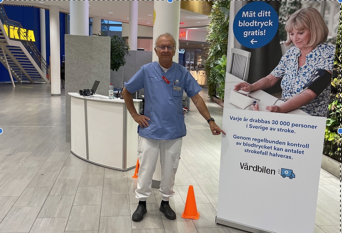 Vi besöker bl a köpcentra för en gratis blodtryckskontroll. Andra platser kan vara äldreboenden och kyrkor.